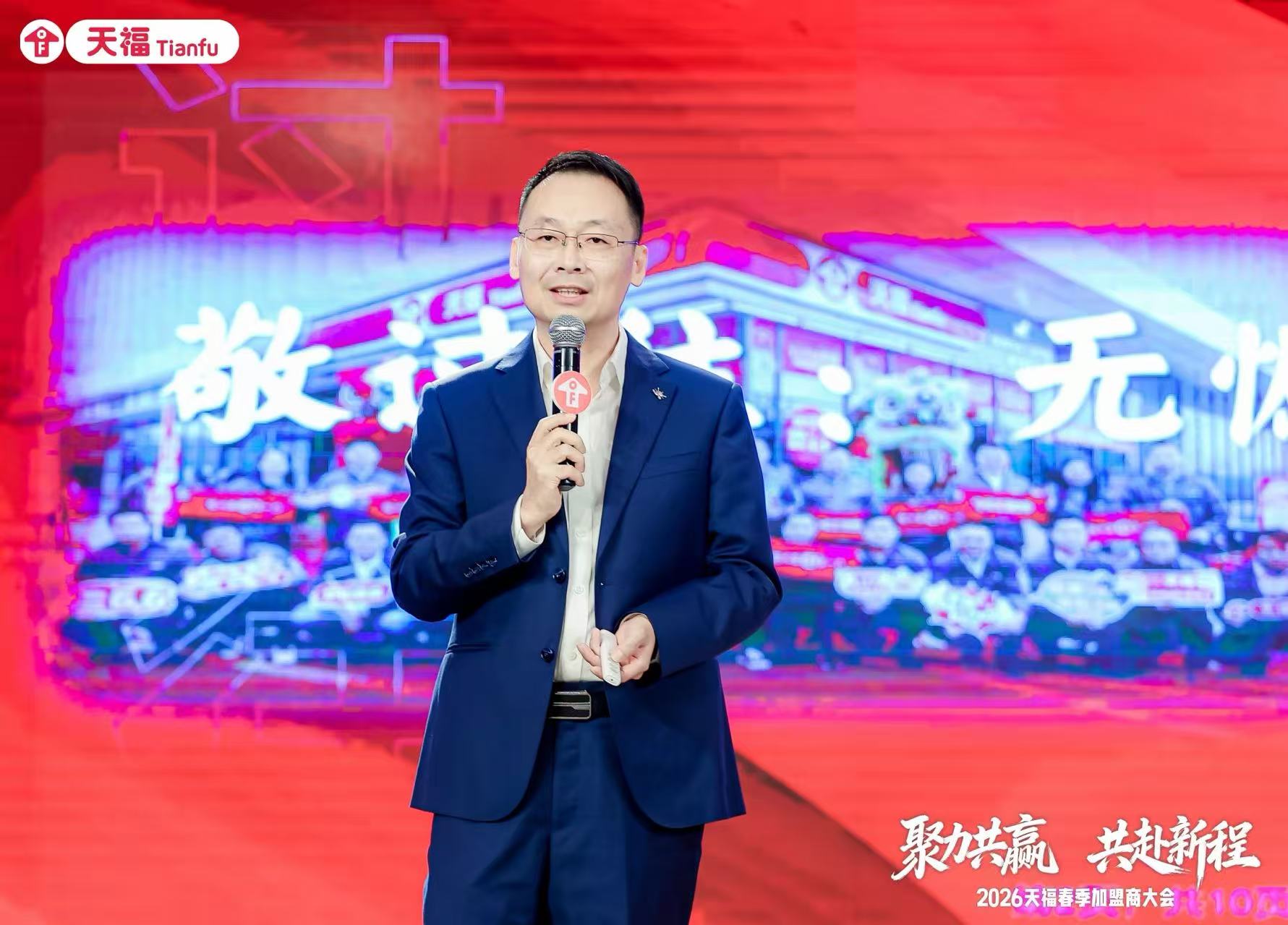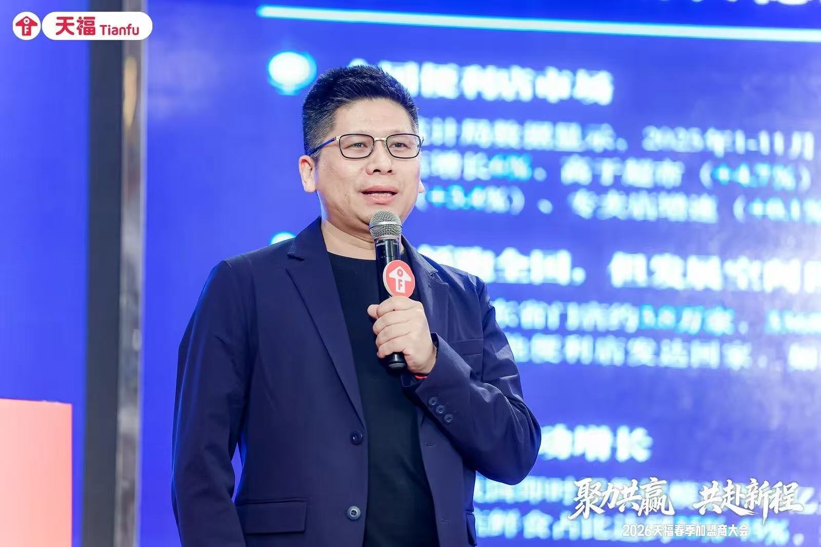 会上,天福集团常务副总裁成世恩先生发表开幕致辞,向莅临现场的各位嘉宾致以热烈欢迎,并向广大加盟商致以诚挚谢意,感谢大家与天福同心同德、携手并进,以深耕市场的坚守与实干,共同推动品牌发展。以 “三敬” 凝练天福的发展信念:敬过往,我们坚守初心,无憾耕耘便利店事业;敬当下,我们无惧竞争,积极应对市场挑战;敬未来,我们聚力同行,共赴崭新篇章。